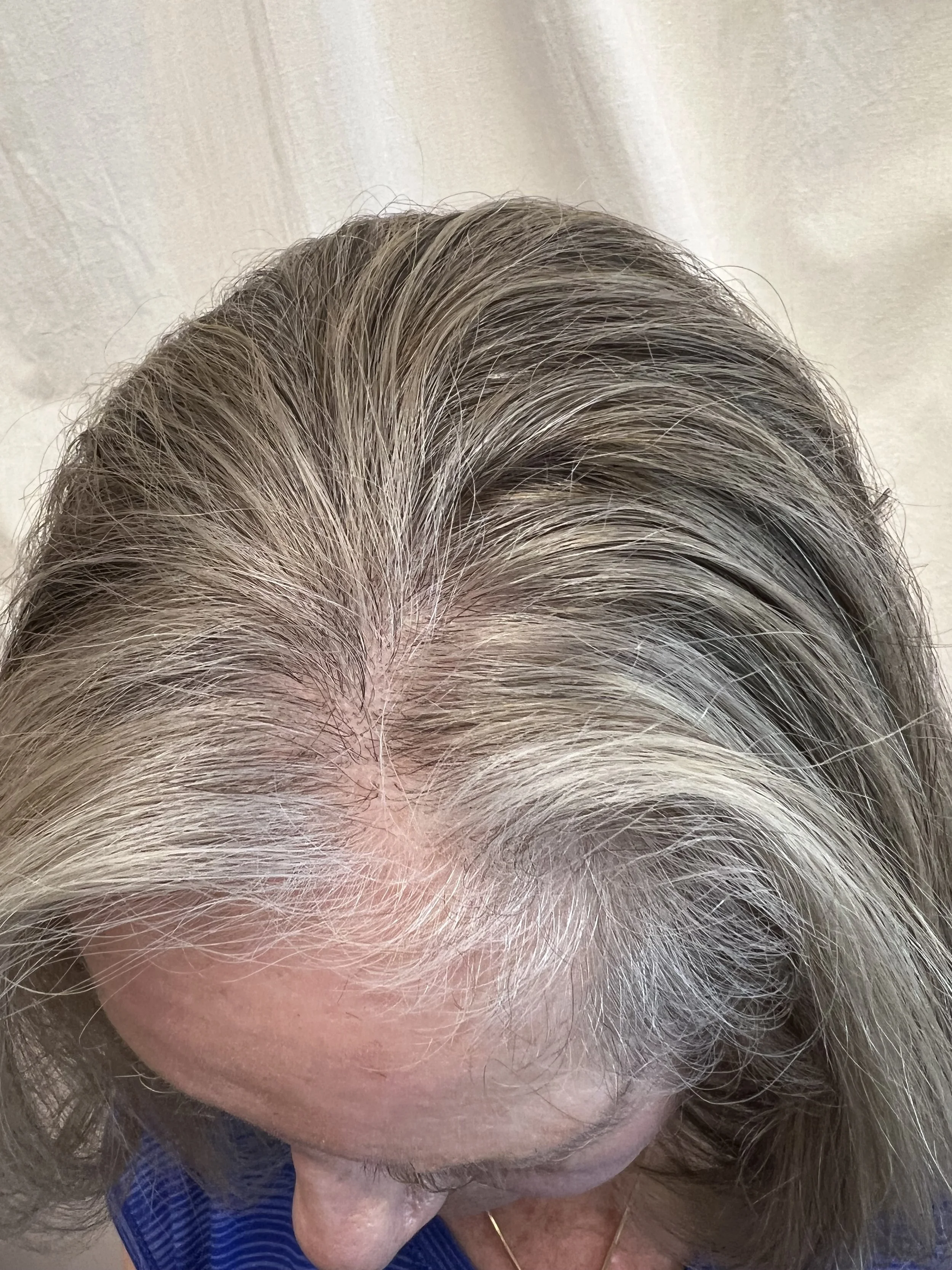 This method involves adding strategic highs and/or lows without coloring every strand. It gently diffuses the line between her natural grey and the old dye, without locking her into full-coverage maintenance or dramatic change.